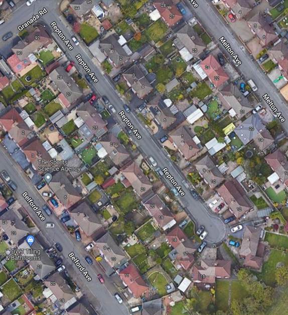 arranged 10 each side and 8 forming a circle at the top, the cul de sac. Number 19 was just before the circle on the